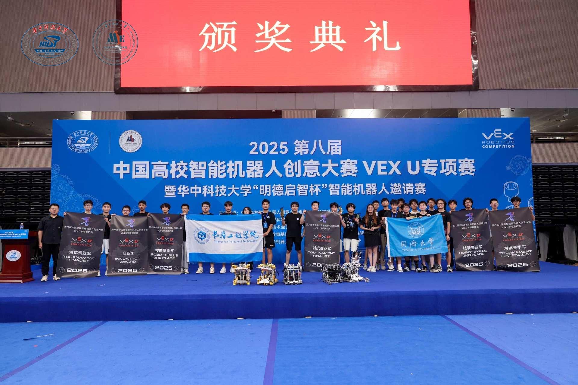 7月18日至20日,第八届中国高校智能机器人创意大赛VEX U专项赛暨华中科技大学“明德启智杯”智能机器人邀请赛在华中科技大学举行。经过三天的激烈角逐,我校VEX U团队最终斩获对抗赛亚军、技能赛季军以及创新奖。