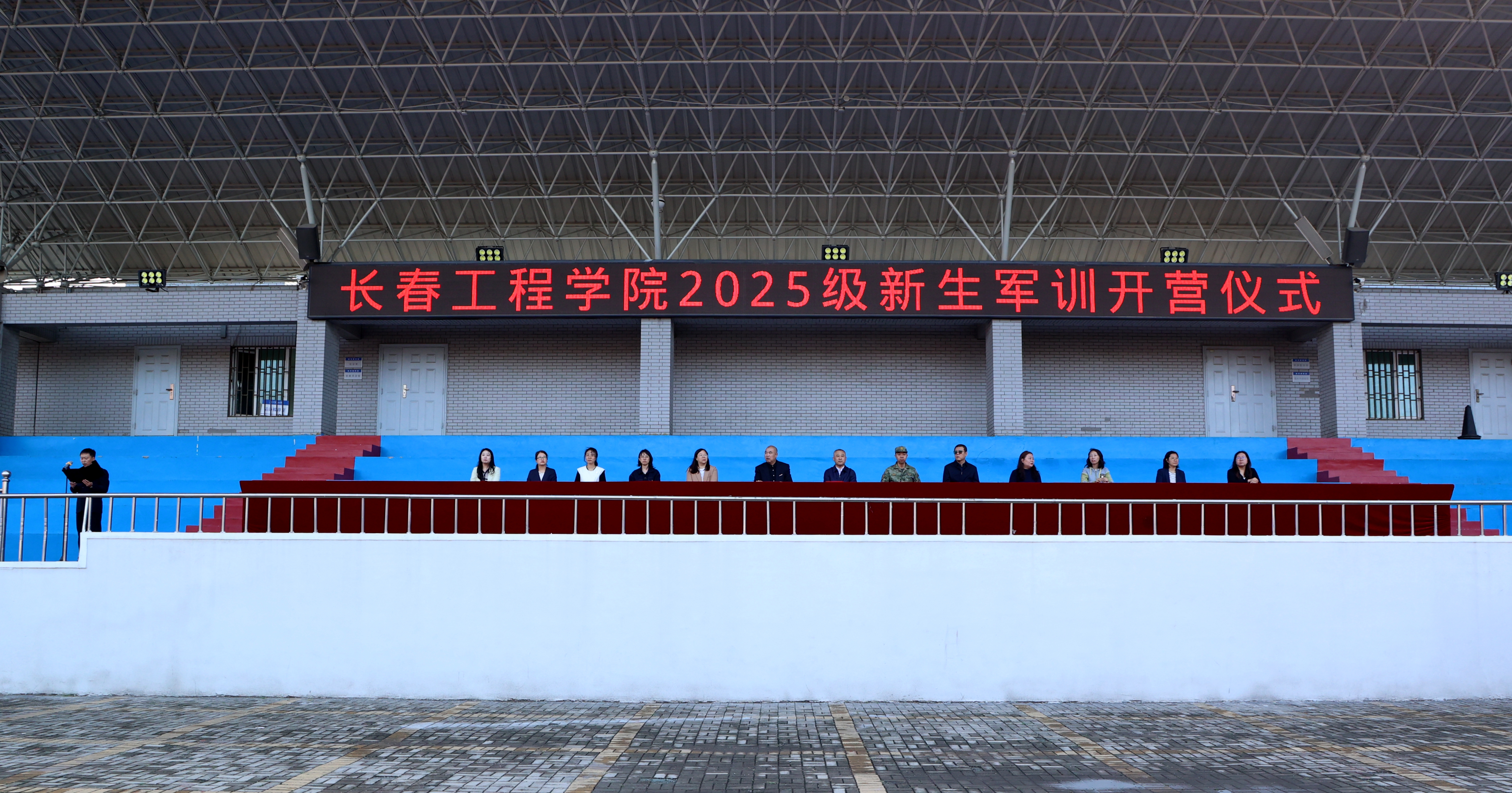 心博在线平台(中国)官网学生工作处、体育教研部相关负责人,各学院党委副书记和辅导员,全体承训教官及2025级全体参训学生参加军训开营仪式。
