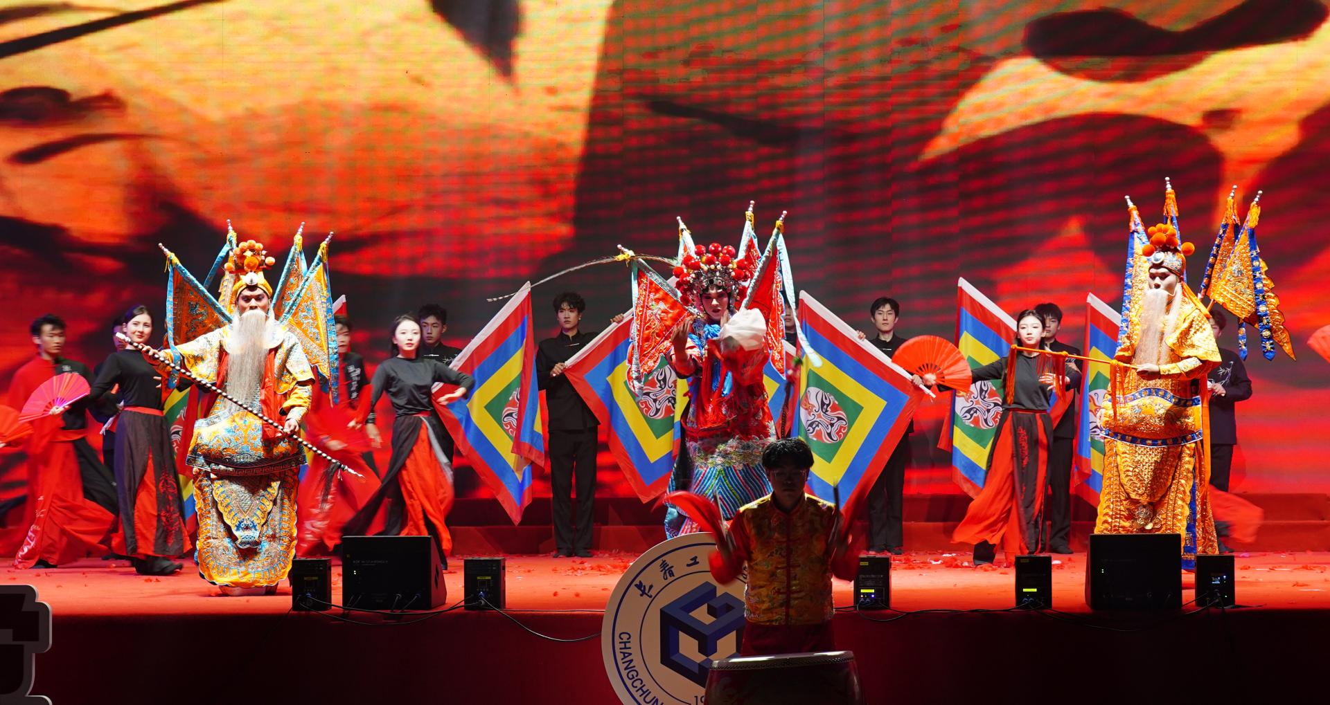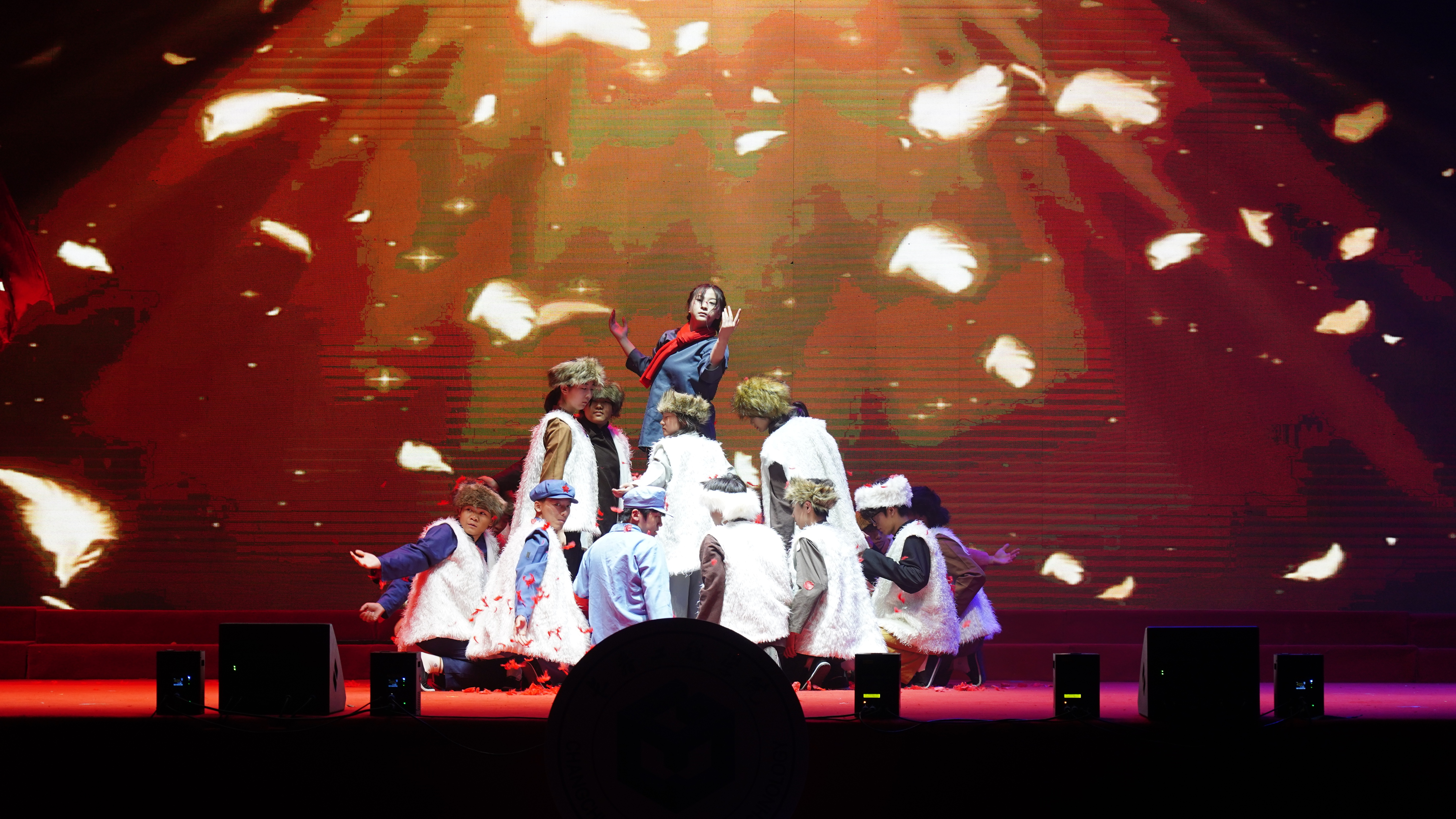 第四篇章为煜煜星河,复兴有我。红色舞蹈《桥渡国殇》以极具感染力的艺术表达致敬英雄,深情传递爱国情怀;情景合唱《勘探队员之歌》通过生动的表演,歌颂了劳动者的奉献精神;歌舞《势不可挡》以恢宏的气势,表达了长工程师生为实现民族复兴而奋斗的决心。