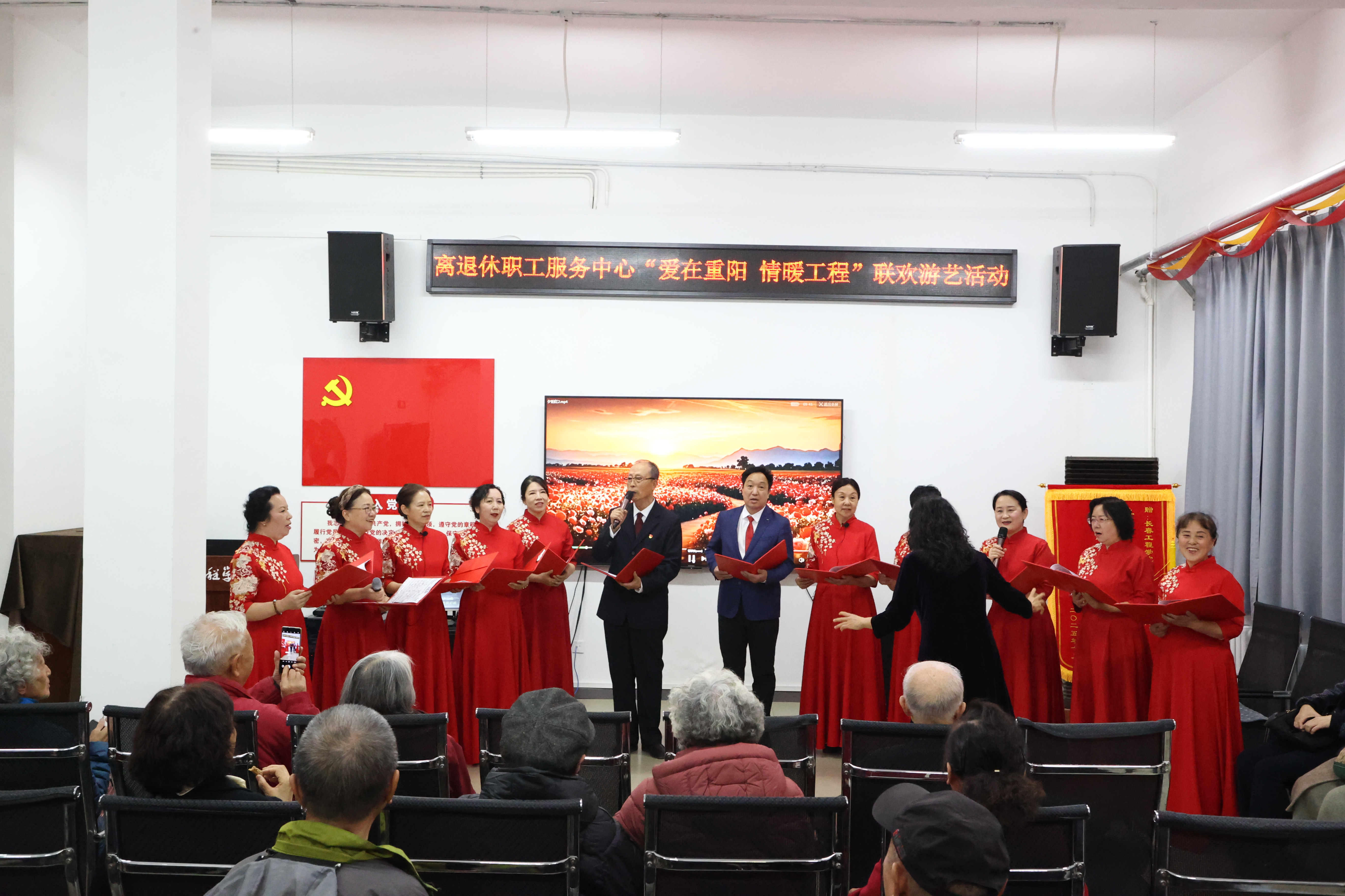活动现场,离退休教职工们容光焕发、神采飞扬,他们自编自导的朗诵、独唱、合唱、独奏等节目轮番登场,精彩纷呈。大家在舞台上尽情展示才艺,通过一个个精彩节目表达家国情怀、歌颂美好生活,赢得现场热烈掌声。活动在合唱《夕阳红》中落下帷幕。