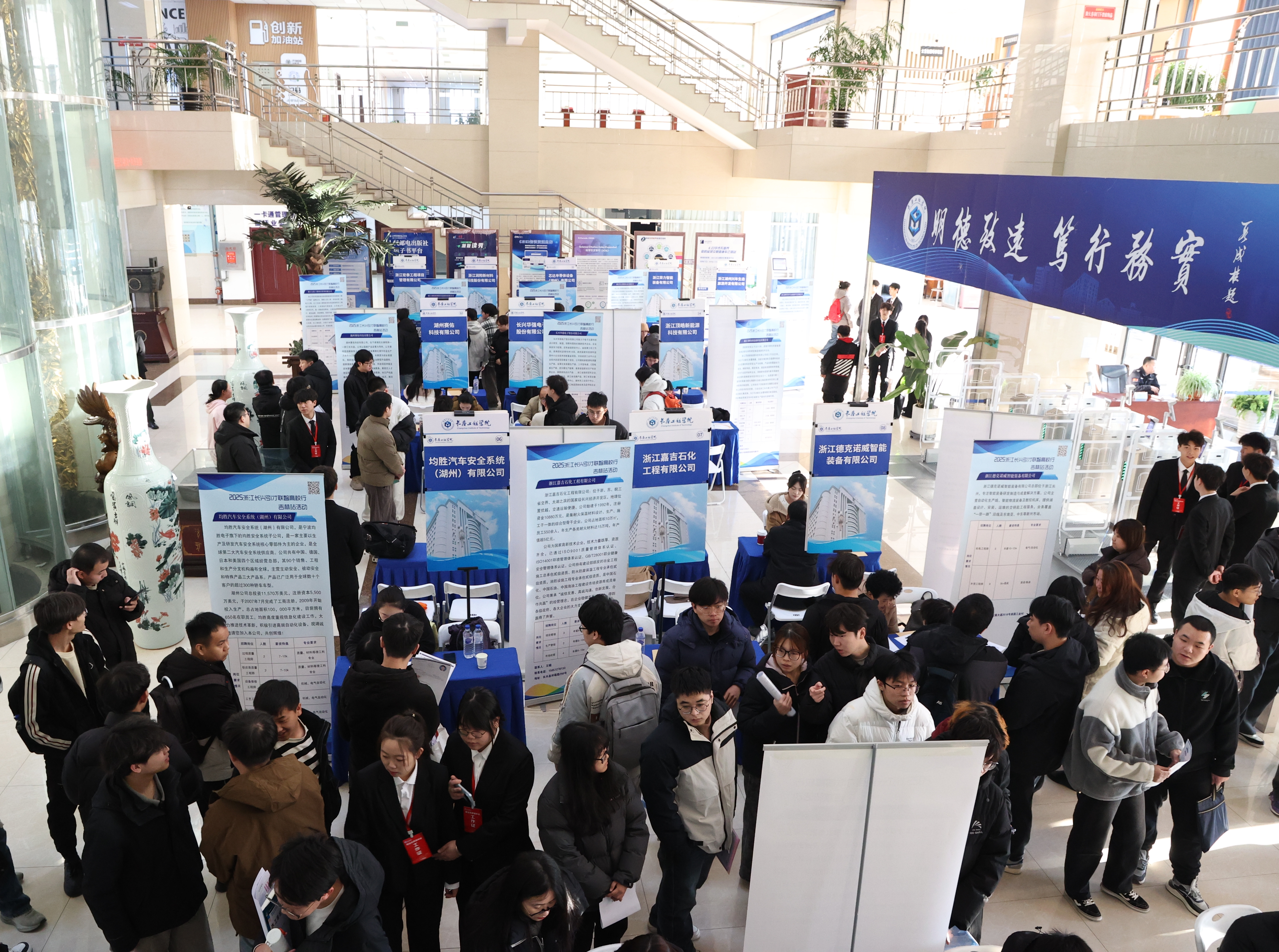 为深化校地合作,助力2026届毕业生高质量就业,全国百强县浙江长兴组织重点企业招聘团,于11月18日在我校逸夫图书馆一楼举办专场招聘会。