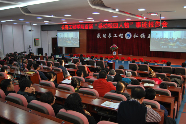 与会师生一起观看了我校首届“感动校园人物”事迹展播;聆听了王为玲老师所作的《三尺讲台铸师德》、康青岩师傅所作的《爱心无大小,慈善在身边》、刘洋同学所作的《用行动诠释爱心,用真情温暖社会》、邢艳山同学所作的《“动心忍性,增益其所不能”——我的奋斗路》事迹报告。报告会进行过程中,每到动情之处,会场都响起了热烈的掌声。