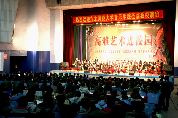 10月23日,以“巡礼艺术殿堂,领受文化盛宴,构建高雅校园,塑造健全人格”为主题的“高雅艺术进校园”活动在心博在线平台(中国)官网大学生活动中心拉开帷幕。来自东北师范大学音乐学院管弦乐团的八十多名同学为我校师生奉献了一场精彩非凡的音乐盛宴。
