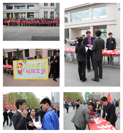 同日,大学生自律委员会、大学生思想政治素质发展和建设委员会发起的“弘扬传统美德,砥砺诚信品质,做文明大学生”主题签名活动在本部一食堂、西区5教及东区图书馆同时举行。活动现场老师同学们积极响应,纷纷表示要从自身做起,从小事做起,带动他人,让诚实守信深入我们的生活。