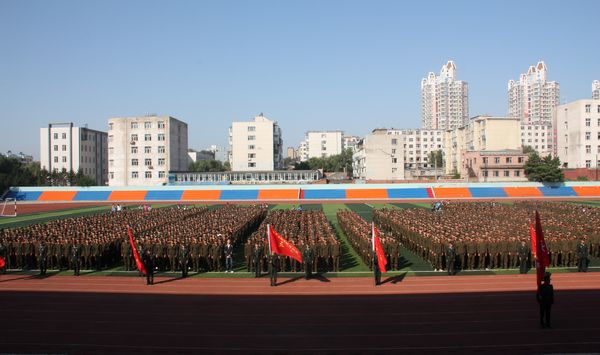 上午8:30,伴随着雄壮的中华人民共和国国歌,我校2012级新生军训开营仪式正式开始。副院长任玉珊、党委副书记吴占军,139团副参谋长苗广军、军训团团长时宁,学工处、保卫处、体育教学部负责人以及各教学院领导出席了仪式。