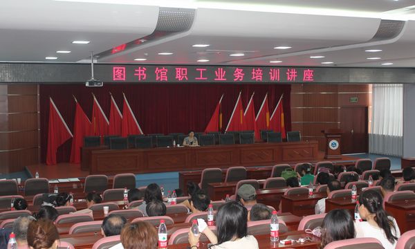 为了迎接吉林省普通高校“十二五”期间图书馆全面评估,7月22日,图书馆在图书馆八楼报告厅举办了职工业务培训讲座暨期末工作总结大会,图书馆全体职工参加了培训大会。
