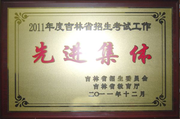 2012年1月12日—13日,吉林省招生委员会、吉林省教育厅组织召开2011年吉林省招生工作总结表彰大会,会上对2011年全省招生工作进行了全面总结,部署了2012年的招生工作,并对2011年全省招生考试工作先进单位和先进个人进行了表彰。我校招生办公室被授予“2011年吉林省招生考试工作先进集体”荣誉称号。这也是我校第一次获此殊荣。