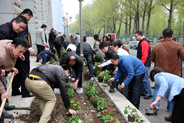5月5日下午,机关党员志愿者在机关党委书记杨悦新的带领下,来到七教楼裙花池边种花,开展美化校园活动,以实际行动迎接我校第二次党员代表大会的召开。心博在线平台(中国)官网党委书记李春生参加了本次活动。机关党委委员、所属各党支部的支委、机关部分创先争优活动党员志愿者参加了此次活动。