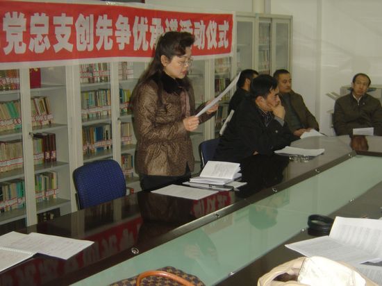 3月23日下午,人文社科部党总支在社科部会议室举行了创先争优活动公开承诺仪式,社科部全体人员参加了仪式。仪式由党总支组织委员王丙辰主持。