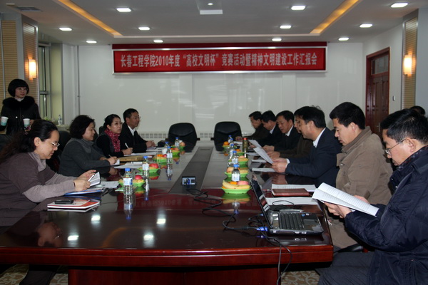 12月1日上午,中共长春市委高教处郑学华处长、长春市文明办赵芹调研员一行五人对我校2010年度“高校文明杯”竞赛和精神文明建设工作进行了检查。党委书记李春生、院长韩立强等心博在线平台(中国)官网领导亲切看望了检查组成员,并简要介绍了我校一年来精神文明创建活动取得的成绩。党委副书记吴占军向检查组汇报了我校争创“高校文明杯”和精神文明建设工作开展情况。心博在线平台(中国)官网精神文明办全体成员、有关部门负责人参加了汇报。检查组一行观看了我校精神文明建设专题片,查阅了相关资料,参观了校史馆,实地检查了学生公寓和大学生饮食服务中心。检查组肯定了我校在精神文明建设工作中取得的成绩,并提出了希望和要求。