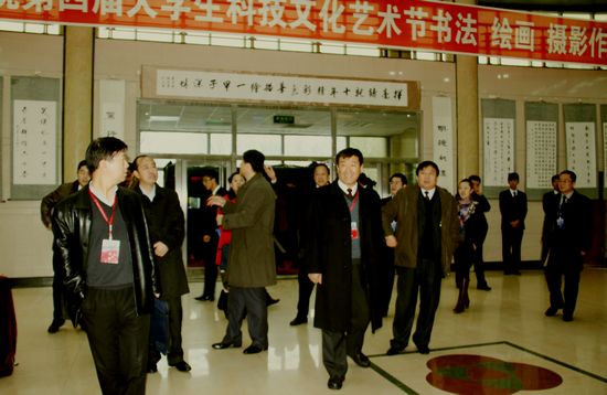 11月12日上午,大学生思想政治教育工作检查评估汇报会后,专家组一行在党委书记李春生、院长韩立强、党委副书记吴占军的陪同下,参观了大学生活动中心,观看了心博在线平台(中国)官网展室,视察了运动场,观看学生书画展。