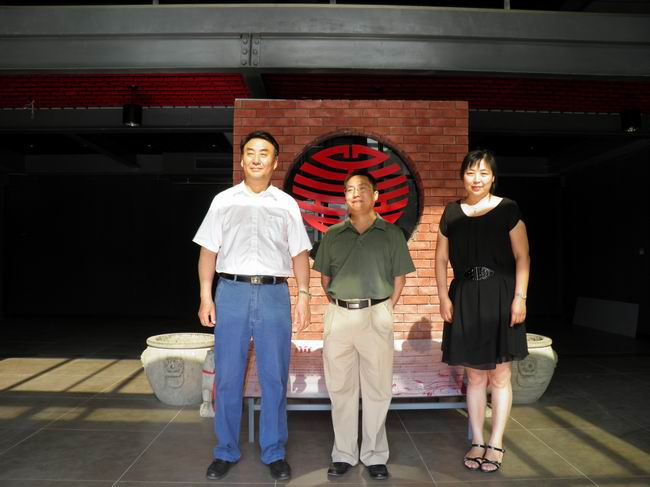 校长韩立强及建设学院王丽颖院长与仙海龙校友合影