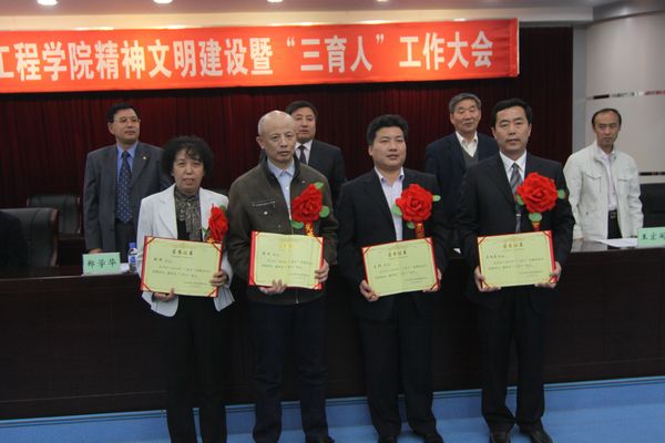 大会首先表彰了2007—2009年度14个“三育人”先进集体,4名“三育人”标兵,68名“三育人”先进工作者,与会领导为获奖单位和个人颁奖。管理学院分党委书记于立君、教务处处长黄金林、图书馆馆长张萍分别代表先进集体做了“三育人”经验介绍;吉林省优秀教师、吉林省师德先进个人、长春市师德标兵、我校“三育人”标兵张文同志代表先进个人做了经验介绍。