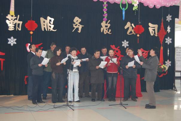 12月31日下午14:00时,饮食服务中心二楼大厅张灯结彩,洋溢着喜庆气氛。后勤服务总公司迎接2010年新年联欢会在这里举行。校党委书记李春生、院长韩立强、副院长田士文、任玉珊、副书记吴占军、张未知、校工会主席李文建等领导同志和来自总公司各个岗位135名员工欢聚一堂,共庆新年。后勤服务总公司林时文副总经理主持了此次盛会。