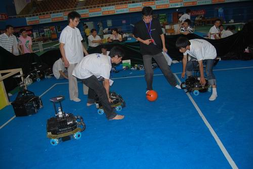 7月13日,经过了全自主型3VS3机器人足球赛、半自主机器人5VS5足球比赛、人机点球大赛、避障比赛和举重比赛后,所有的比赛于下午5点30分全部结束。在半自主机器人5VS5足球比赛中河海大学“e龙”队获得冠军;全自主型3VS3机器人足球赛淮安信息职业技术学院获得了第一名;投篮比赛中华中科技大学机器人足球团队以6分获得了冠军。电信学院副院长刘文洲对人机点球大赛进行了现场解说。