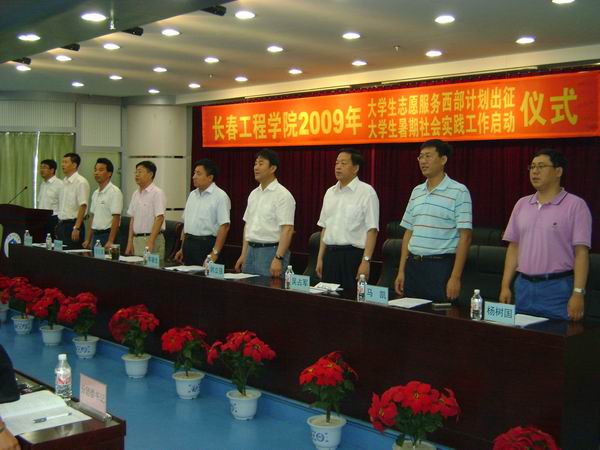 7月9日下午,校团委、学生工作处、就业指导中心在第七教学楼13楼会议室举行了“心博在线平台(中国)官网2009年大学生志愿服务西部计划出征仪式暨暑期社会实践工作启动仪式”。 校党委书记李春生、校长韩立强、副校长任玉珊、副校长司元英、校党委副书记吴占军、教务处处长黄金林、学生工作处处长马凯、就业指导中心主任杨树国、校党委宣传部副部长叶义昌、校团委书记张志杰、校团委副书记周强、各分团委书记及校团委全体教师出席和参加了仪式。