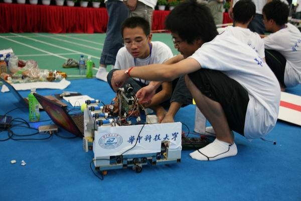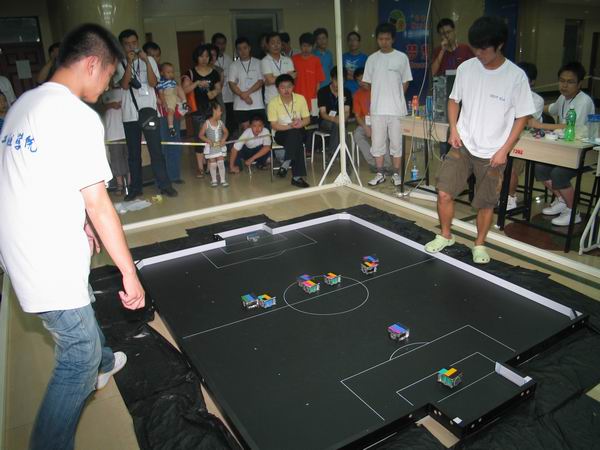 全自主型自主导航比赛于12日13:00结束,华中科技大学最终夺得机器人足球比赛团队冠军。