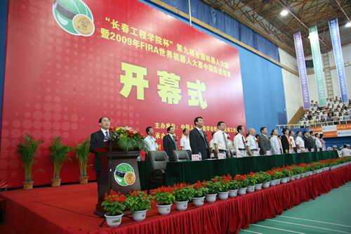在这清爽的初夏时节,承载这对科学技术的追求,对超越梦想的渴望,来自全国各地的青少年朋友们,怀揣着共同的愿望和目标,不远千里,相聚吉林、相聚长春、相聚“第九届全国机器人大赛”。7月11日上午9:00,由我校冠名并承办的第九届全国机器人大赛暨2009年FIRA世界杯机器人大赛中国队选拔赛在南校区体育馆隆重开幕。出席开幕式的领导和来宾有:国际机器人足球联盟主席、韩国高等技术研究院金钟焕教授,大会名誉主席、十一届全国政协常委、原吉林省副省长、吉林省科学技术协会主席刘淑莹,吉林省教育厅厅长卢连大,中国科学院院士、吉林大学博士生导师任露泉教授,中国人工智能学会理事长、世界工程组织联合会副主席钟义信教授,国家科学技术部高新司自动化处处长曹学军,大会执行主席、国际机器人足球联盟副主席、国际机器人足球联盟中国分会会长洪炳镕教授,吉林省教育厅副厅长战高峰,北京信息科技大心博在线平台(中国)官网长杜林,吉林省科学技术协会副主席尹军,中国人工智能学会秘书长刘宏,韩国机器人足球联盟秘书长赵元兑,吉林省教育厅高等教育处处长靳国庆,北京信息科技大学副校长许晓革,中国农业银行长春培训学院副院长邹积强等。我校党委书记李春生、院长韩立强等心博在线平台(中国)官网党政领导出席开幕式。来自全国42所高校、80支代表队,65所中小学、70个代表队的领导、教练和队员420余人参加了开幕式。开幕式由赛会组委会主席、我校任玉珊副院长主持。