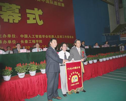 开幕式上,举行了全国机器人大赛会旗交接仪式。下届大赛将于2010年在北京信息科技大学举办。