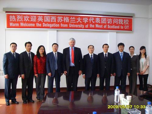 2009年5月6日—8日,英国西苏格兰大学工程与科学学院教学主任David Smyth博士和市场合作部中国项目主管陈君访问我校,副院长任玉珊和副院长司元英会见了代表团一行。
