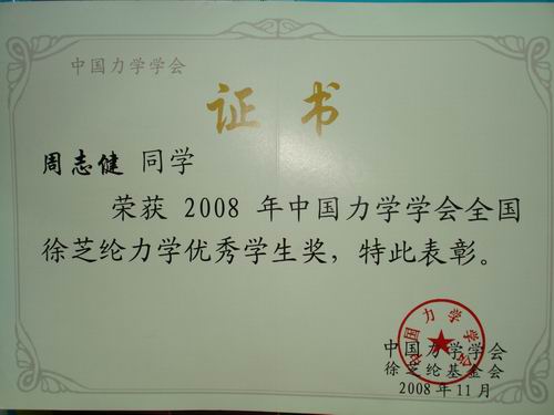 我校学生获全国力学优秀学生奖