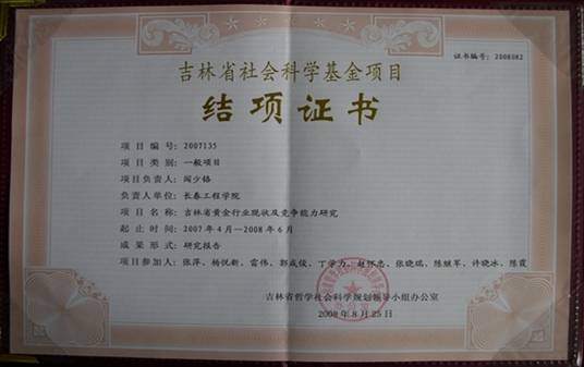 由我校继续教育学院院长闯少铭教授主持的吉林省社科基金项目——《吉林省黄金行业现状及竞争能力研究》于8月25日通过吉林省哲学社会科学规划基金办公室鉴定。