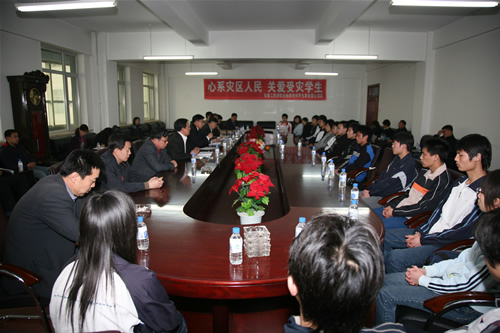5月19日下午,党委书记李春生、副院长司元英、副书记吴占军及党办、院办、工会、学工处、宣传部等职能部门人员和我院地震灾区学生代表进行座谈。校领导详细询问在座同学是否与家人联系上,家里亲人的情况,李书记代表心博在线平台(中国)官网表达了对家在地震灾区的学生的关怀.他对这些学生提出三点希望:一、要相信党和政府领导全国人民一定能战胜这一空前的灾难;二、希望家里受灾的学生要学会坚强,以坚强的精神度过难关;三、希望同学们明确自己的任务,摆脱干扰,学好知识,为重建家园储备本领。座谈会上,李书记代表党委和心博在线平台(中国)官网向受灾学生发放了爱心捐款。