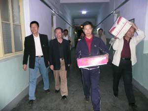 10月6日,产业系统由总支书记徐惠基和副书记张利带队,印刷厂厂长张继承,设计院副院长李洪学、危永江,培训中心经理杨守志等企业领导组成了慰问团,在大雨中为一线教师送温暖。