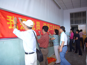 9月4日下午2:10分,在院会议室召开全体党员大会,会上,总支书记侯庆国教授传达了心博在线平台(中国)官网有关文件,随后全院党员在“我是党员迎评工作走在前” 条幅上庄重的签字,决心以严谨、科学、务实的工作作风迎接国评的到来,为在国评当中取得优异的成绩和心博在线平台(中国)官网的发展建设作出积极的贡献。
