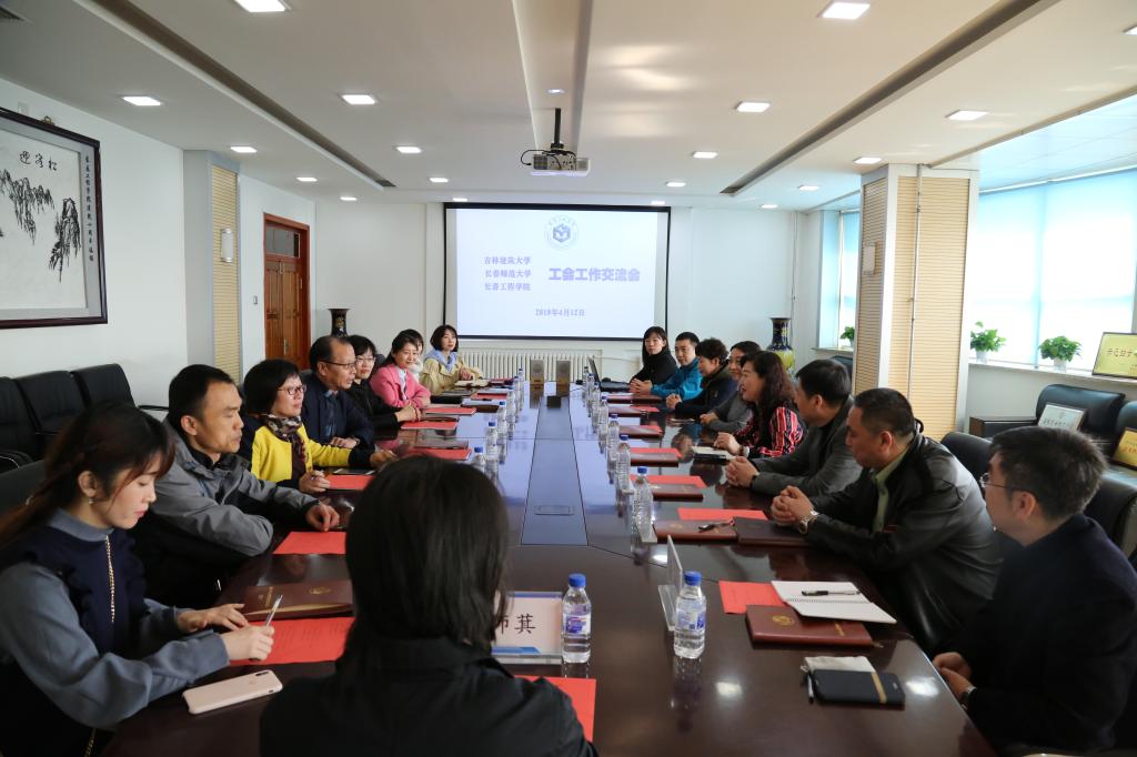 2019年4月12日上午,吉林建筑大学工会主席许君臣等一行5人、长春师范大学工会主席李秀岩等一行4人来到我校,就“职工之家”建设等工作进行参观交流。我校工会主席张蕴娣及相关工会干部、部分教工协会会长、基层分工会主席等参加交流座谈。