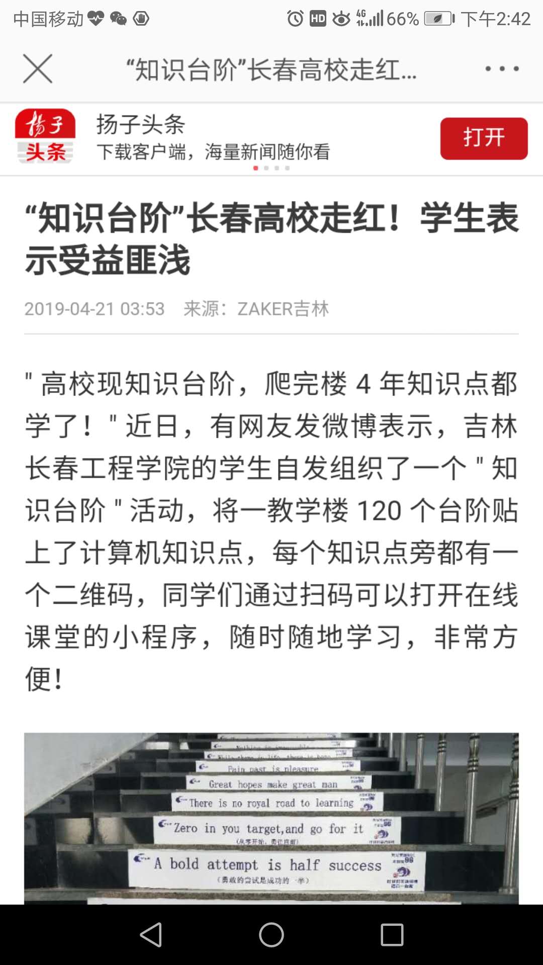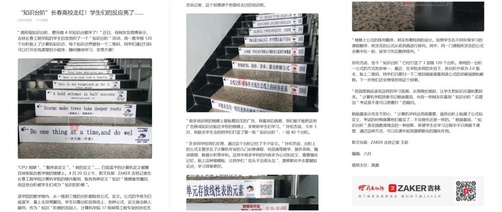 计算机技术与工程学院创新工作方式,提升学生学习兴趣,让学生在徜徉台阶之间,感受到知识的魅力,于润物无声中育人的好方法、好点子在各家媒体播出后,得到了社会多方点赞。