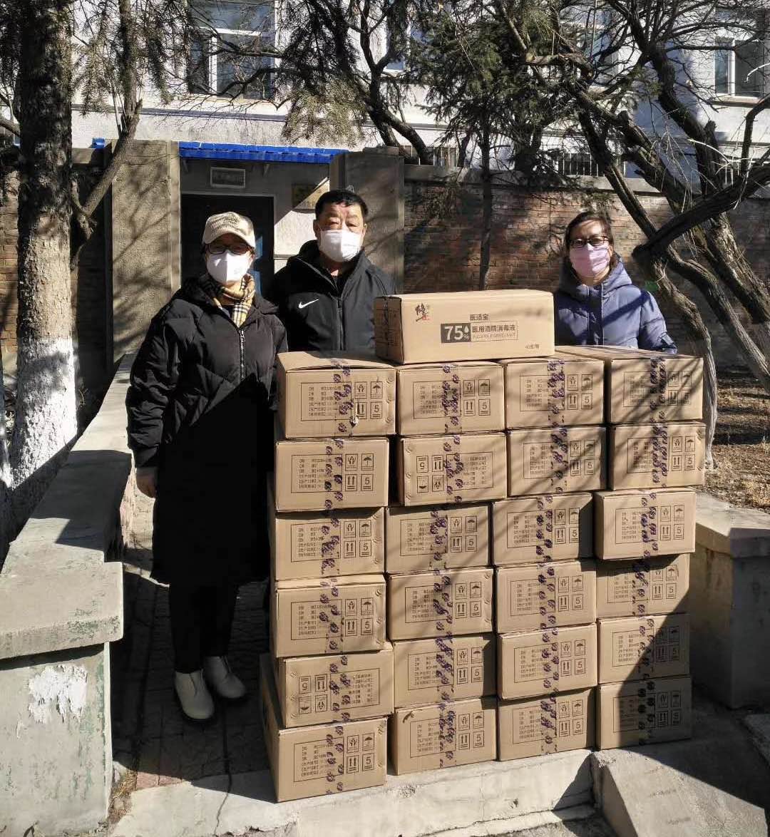 2020年2月20日上午,长春辰昊科技有限公司总经理张志娟带领两名员工,将最近采购的1000瓶医用酒精送到校医院,用于支援我校新冠肺炎疫情防控工作。