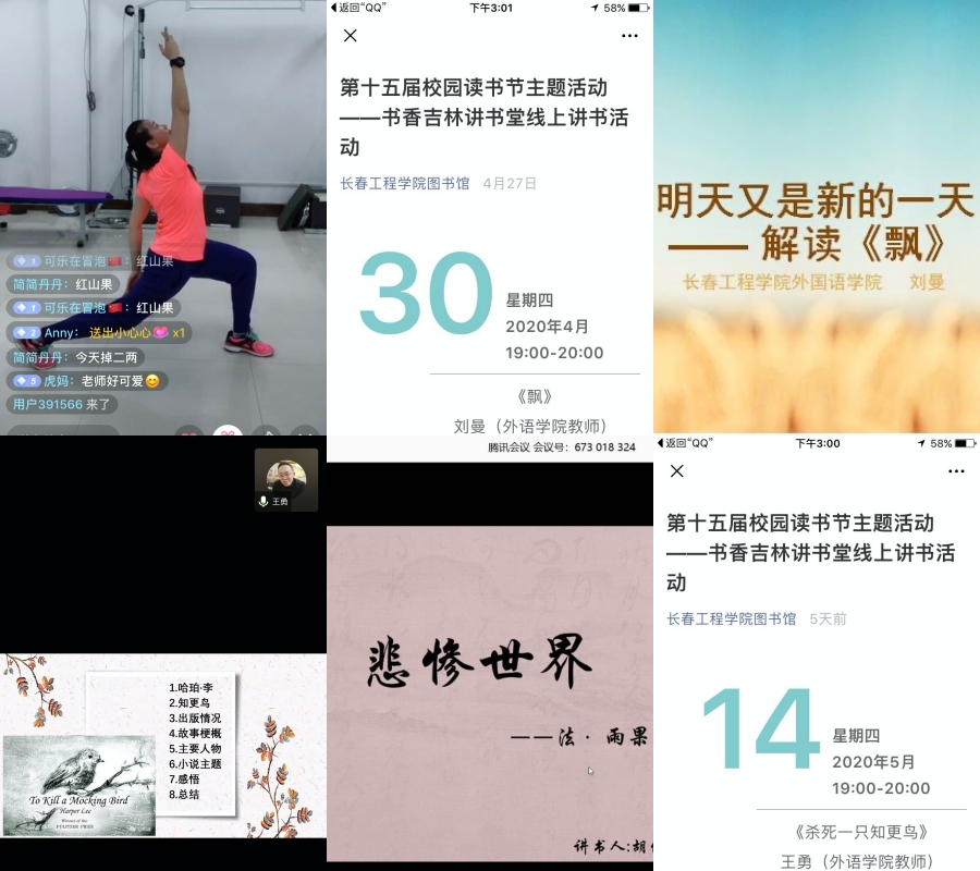 由教工阅读协会承办的“书香吉林讲书堂心博在线平台(中国)官网线上讲书”活动和“跬园书香抗疫线上读书会”吸引了众多读书爱好者。以腾讯会议直播的形式,“云讲堂”走进学生中间,十几场网上读书讲书活动的举办,让学生们也受到吸引积极参加到读书讲书活动中来,师生互动共同分享读书讲书心得的良好局面得以形成。《飘》《杀死一只知更鸟》《平凡的世界》等国内外经典名著的分享,丰富了教职工和学生们的精神生活。