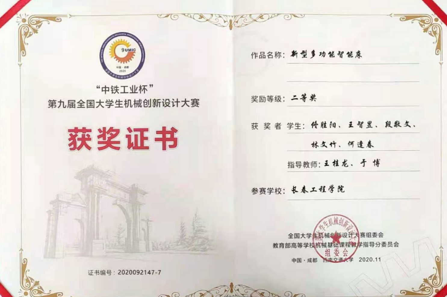我校学生在第九届全国大学生机械创新设计大赛中再获佳绩