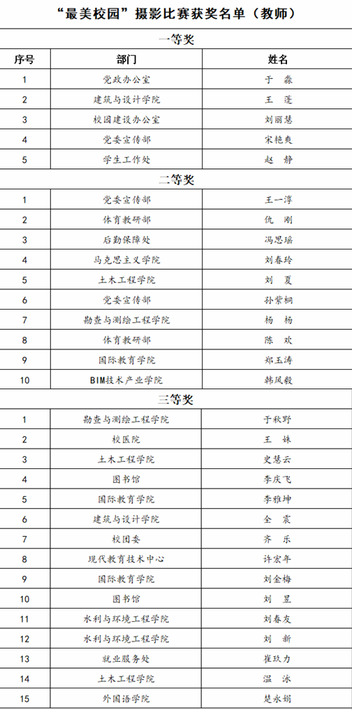 12月15日,由党委宣传部、校工会、校团委、党委学生工作部、建筑与设计学院等部门(单位)的负责人和老师组成的评委组对参赛作品进行了评选。评委们从作品主题、色彩运用、取景构图等方面对参赛作品进行了专业的点评,并从教工组和学生组的参赛作品中分别评选出一等奖5名、二等奖10名、三等奖15名、优秀奖若干名。