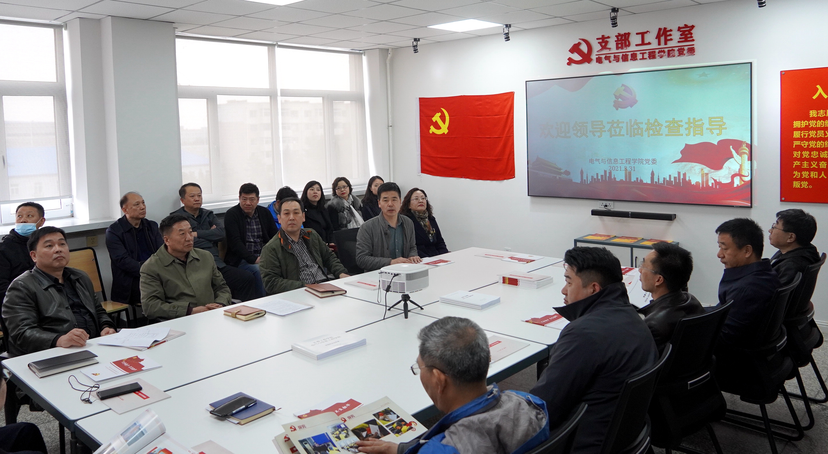 与会人员前往获得首批省级标杆院系培育创建单位电气与信息工程学院党委和获得第二批全国样板支部培育创建单位计算机技术与工程学院软件工程学生党支部进行观摩学习。两个单位就党员活动室创建的思路、举措和支部建设等工作进行了经验分享。