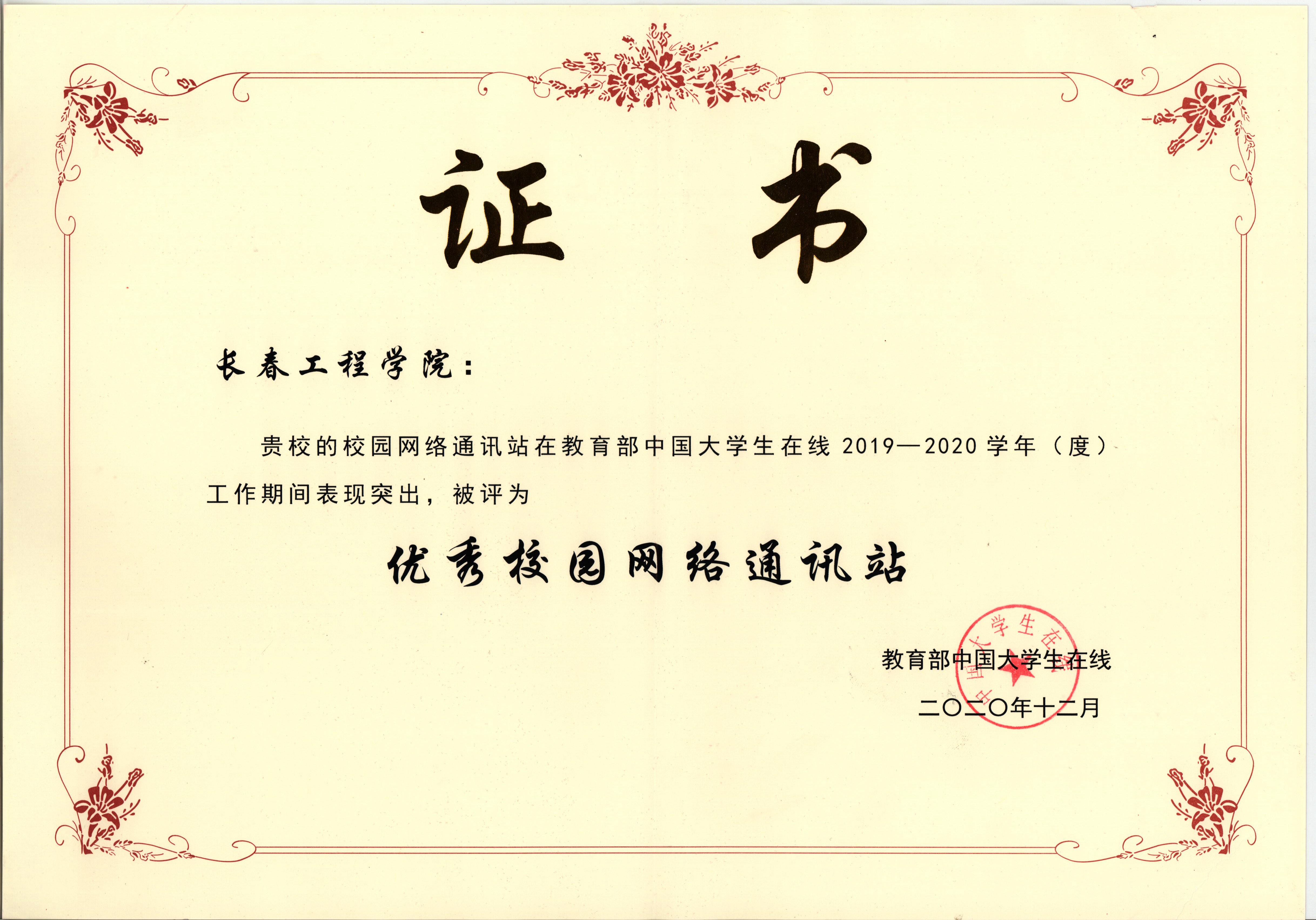 在教育部中国大学生在线2019-2020年度表彰中,心博在线平台(中国)官网网络通讯站不负众望,在全国500多所高校中脱颖而出,荣获国家级“优秀校园网络通讯站”荣誉称号;管理学院曹家玮同学获得“优秀校园媒体人”荣誉称号;党委学生工作部张晔同志获得“校网通优秀指导教师”荣誉称号;我校的原创作品《“我想对‘你’说”第六期:努力拼搏,美好未来,等你来创》获得年度优秀原创内容奖。