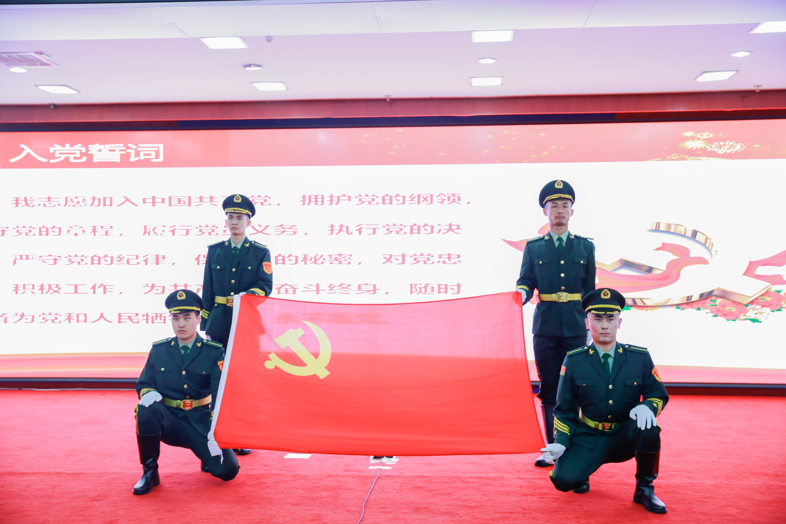 全体毕业生党员在党旗下庄严宣誓,重温入党誓词。