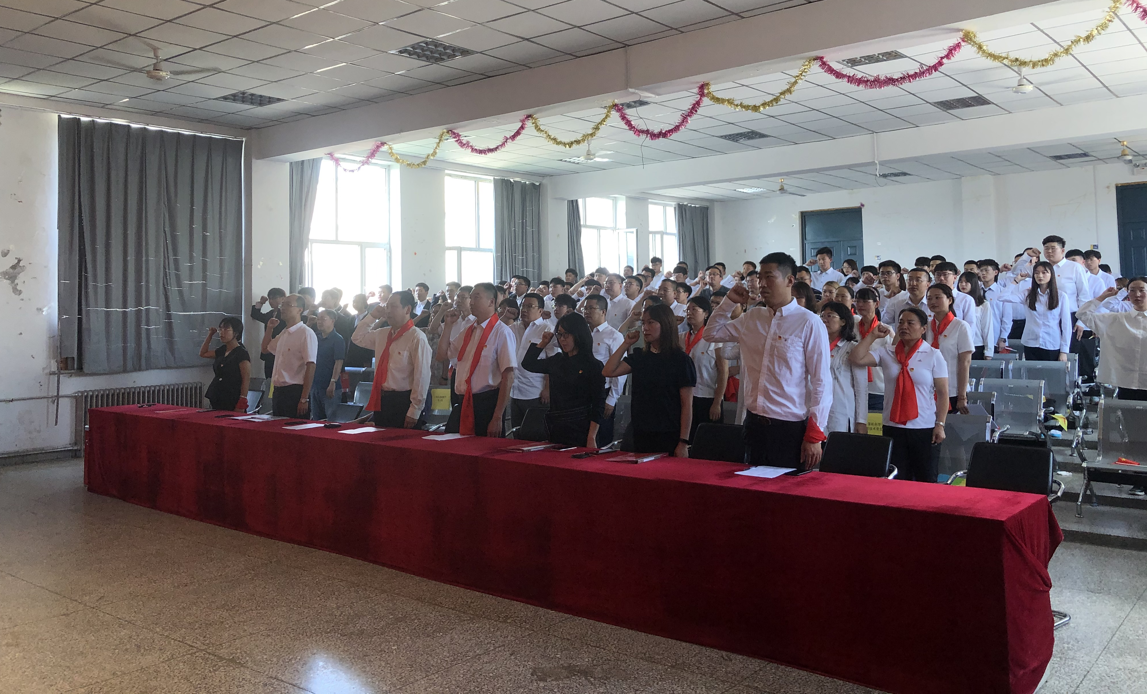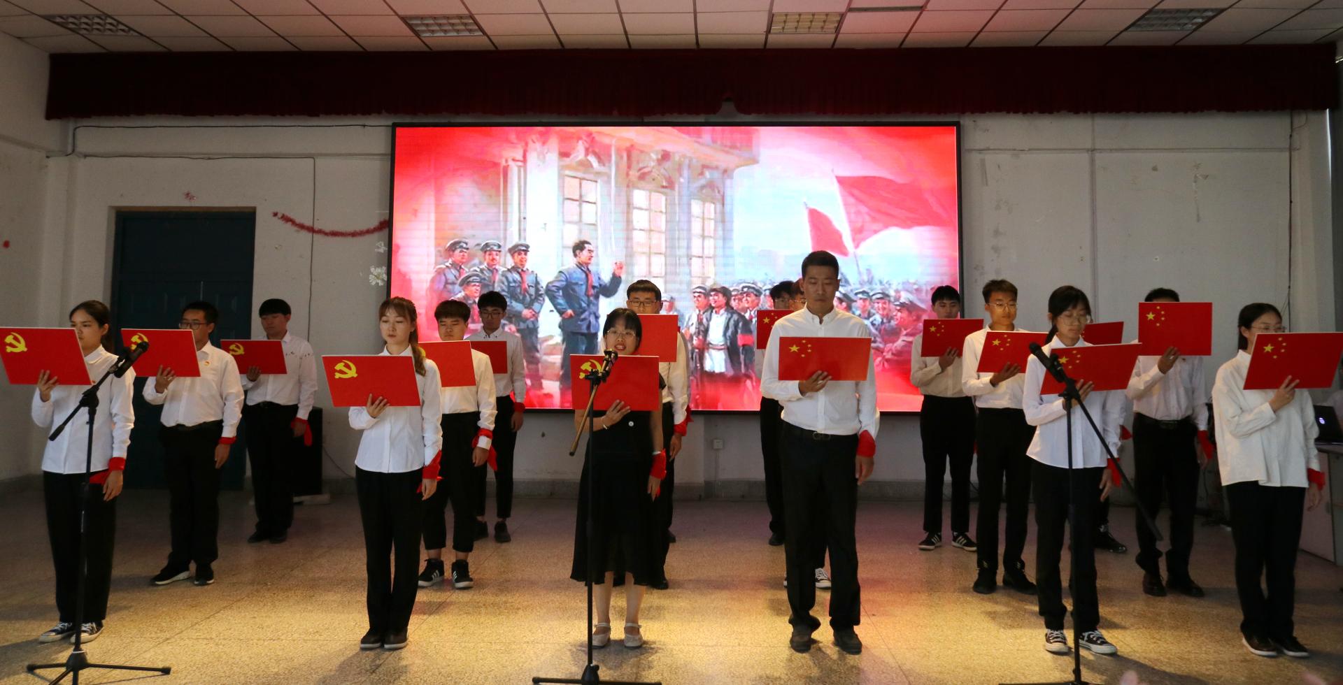 诵读后,学院全体党员重温入党誓词,他们面对鲜红的党旗,紧握右拳,以昂扬的斗志和饱满的热情,铿锵有力地宣读了入党誓词,重温对党庄严而神圣的誓言。