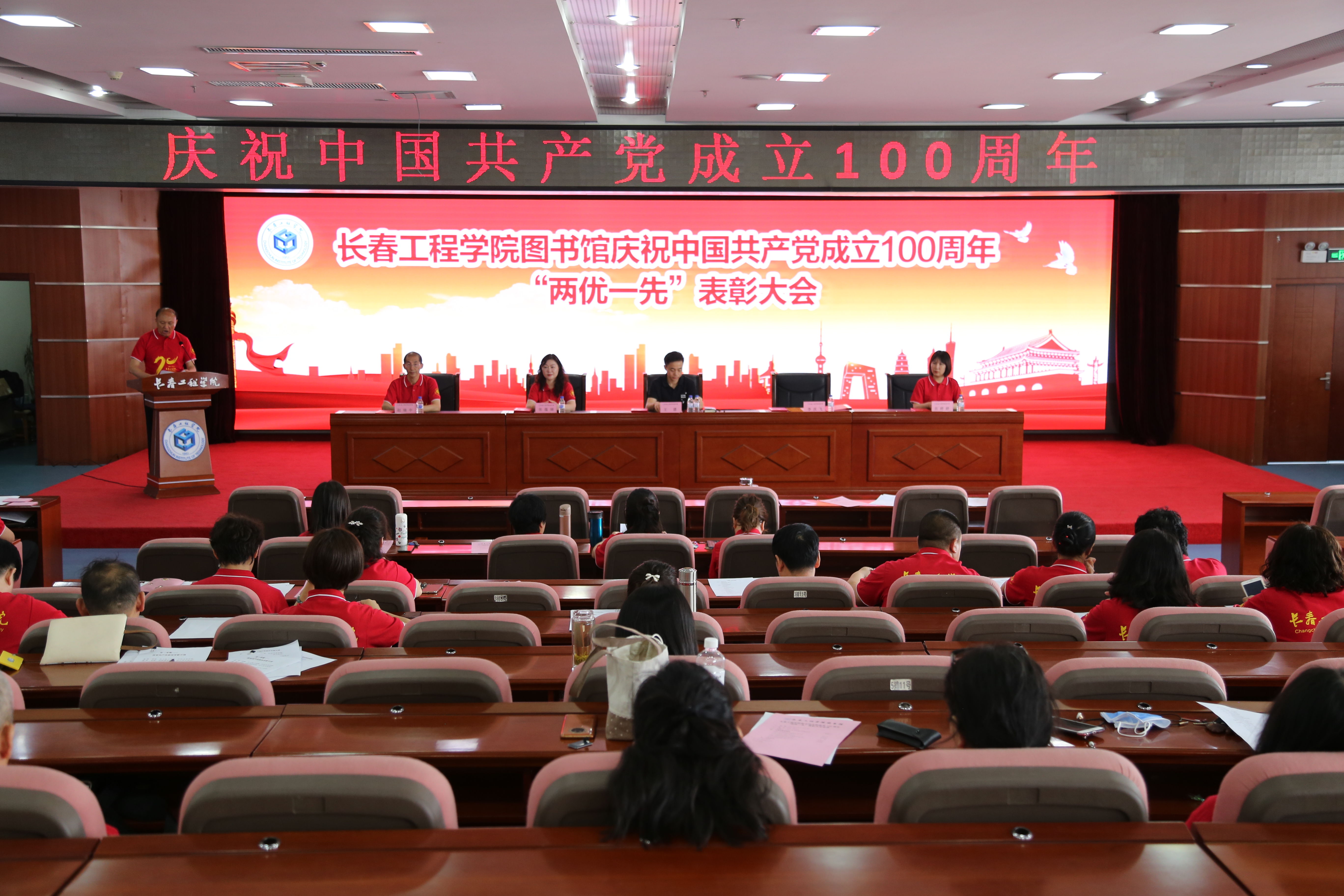 回顾中国共产党百年奋斗历程,讴歌共产党人自强不息的时代精神,6月28日上午,图书馆庆祝中国共产党成立100周年“两优一先”表彰及“颂百年征程 歌时代精神”诗歌朗诵会在第二报告厅举行。