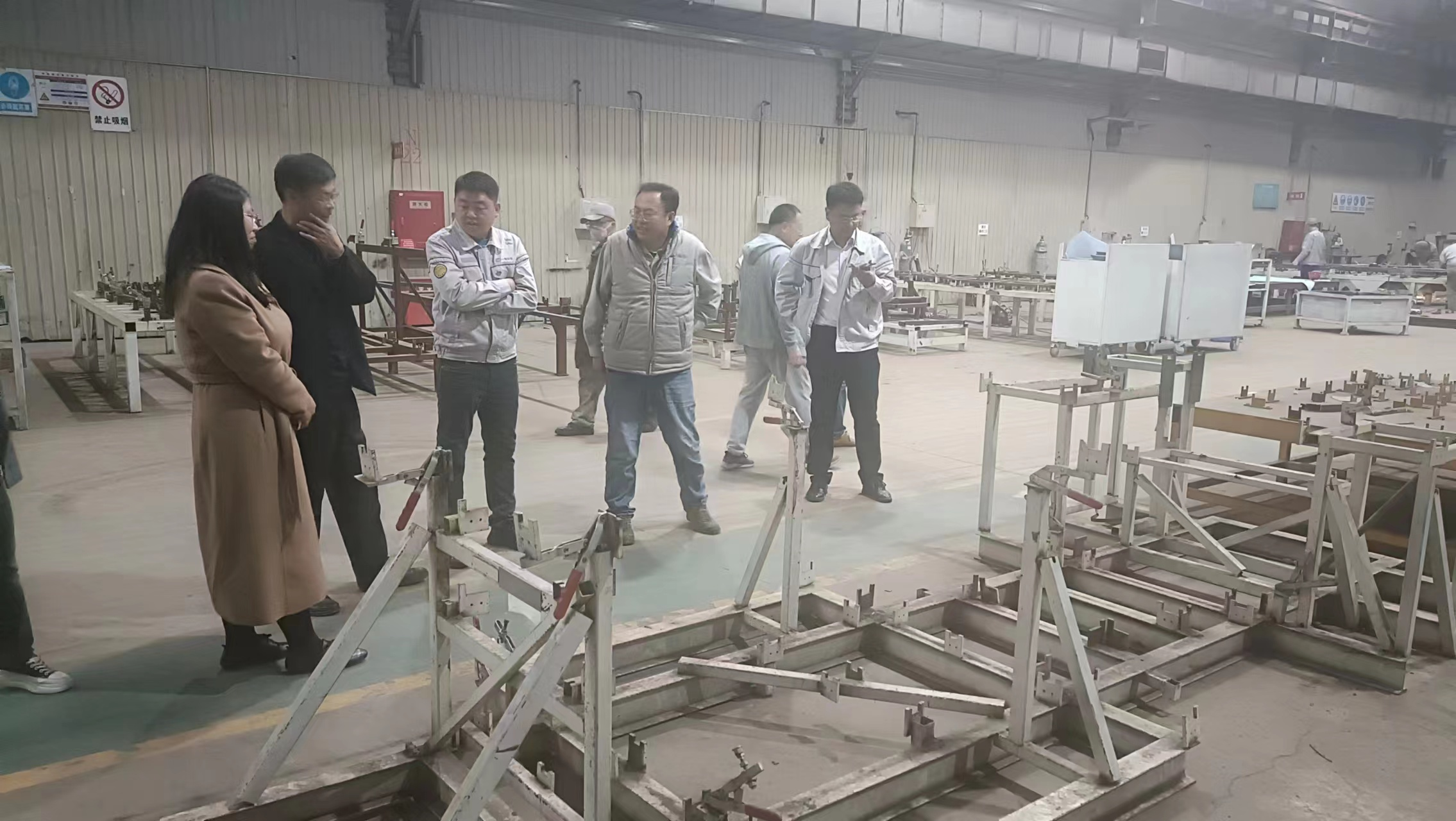 为落实吉林省一主六双发展战略,推动我省特色智能制造产业高质量发展,落实校企产学研深度合作,为青年教师提供学习交流的平台,2023年10月24日,我校机电工程学院党委书记王利涛、先进制造技术研究院院长张爽、汽车零部件检测中心常务主任高金刚、机器人专业教研室主任杨威及科研骨干教师段珍珍博士、侯岱双等人赴一汽解放汽车长春智慧客车分公司进行深度调研与技术项目交流。
