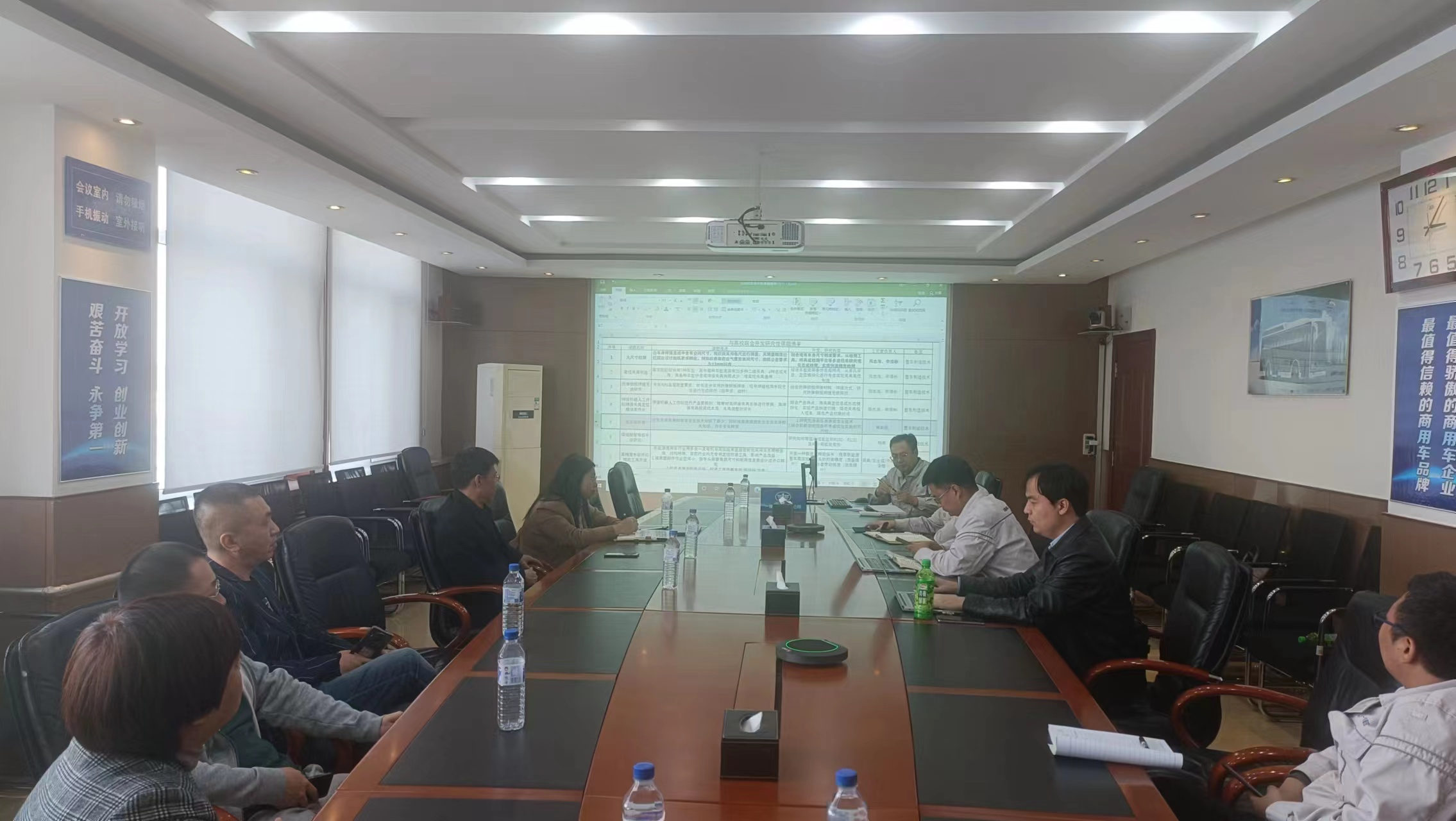 一汽解放汽车长春智慧客车分公司就企业目前需求的新能源客车大尺寸检测、柔性夹具制造、防弹钢板焊缝无损探伤、焊接机器人工作站焊接夹具定位模块柔性化等技术难题与学院教师进行了交流。张爽院长就一汽解放汽车长春智慧客车分公司所需解决的技术难题,结合机电工程学院多年科研工作的研究成果,介绍了机电工程学院同中车长春轨道客车股份有限公司、一汽解放汽车有限公司柳州分公司、陕西重型汽车有限公司等国内知名企业合作研发的专用设备,并就将技术成果应用到解决该企业实际生产难题的可能性进行了深度分析。双方就解决新能源客车大尺寸检测、柔性夹具制造、防弹钢板焊缝无损探伤、焊接机器人工作站等新能源客车产线上核心的技术难题初步达成合作意向。