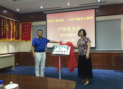 7月14日上午,我校与吉林同鑫热力集团有限公司产学研合作协议签署暨校外产学研基地揭牌仪式在吉林同鑫热力集团有限公司会议室隆重举行。孟祥萍副校长及能动学院、电信学院和科产处相关人员出席了签署仪式。