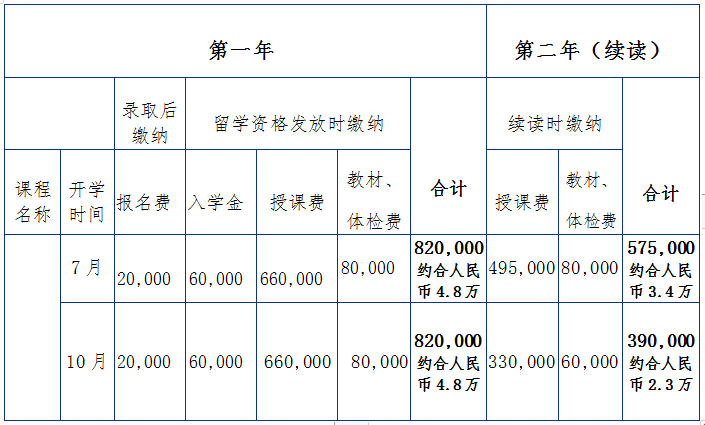 注:1.缴纳学费时,需同时缴纳日本语心博在线平台(中国)官网共济金加入费。费用为每年1万日元(约合人民币600元),缴纳该费用后即加入日本国民健康保险。