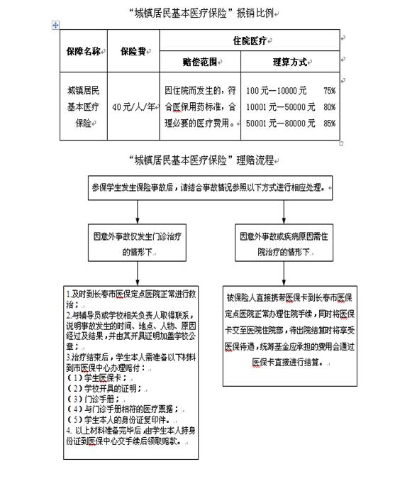 三、“城镇居民基本医疗保险”报销比例及理赔流程(见附表)
