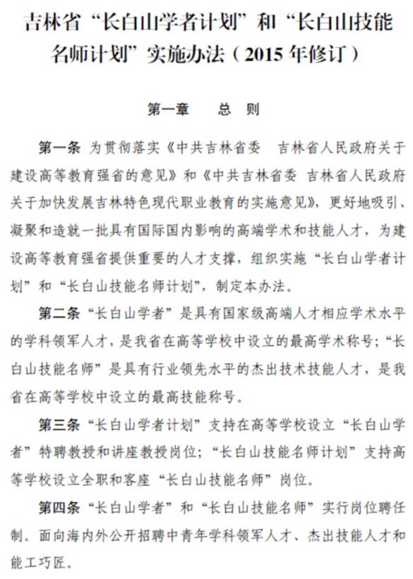 附件:吉林省“长白山学者计划”和“长白山技能名师计划”实施办法(2015年修订)