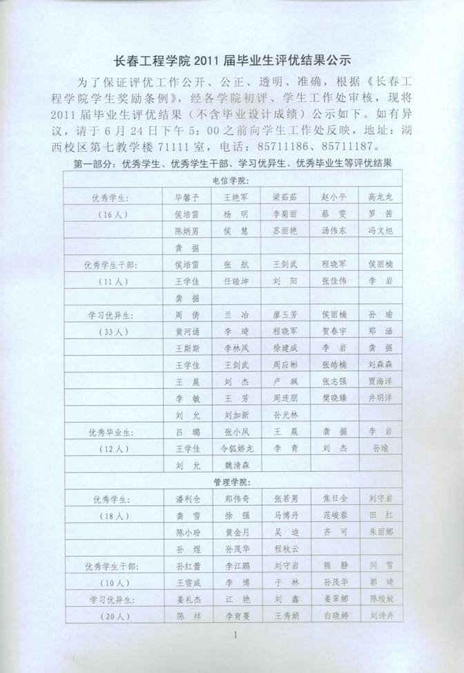 心博在线平台(中国)官网2011届毕业生评优结果公示