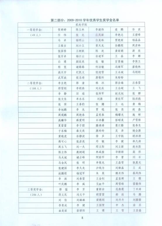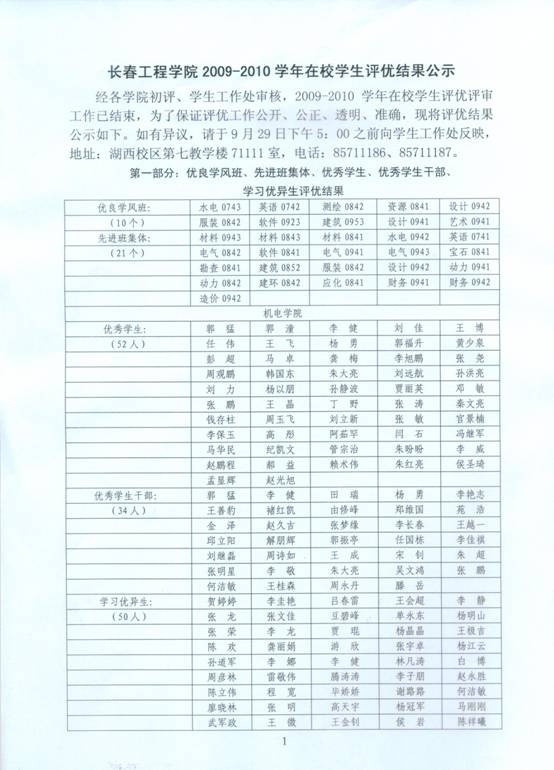 心博在线平台(中国)官网2009—2010学年在校学生评优结果公示