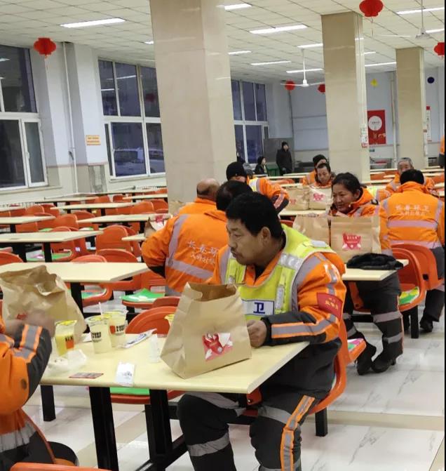 送给环卫工人:81 名环卫工人来吃 " 爱心早餐 "