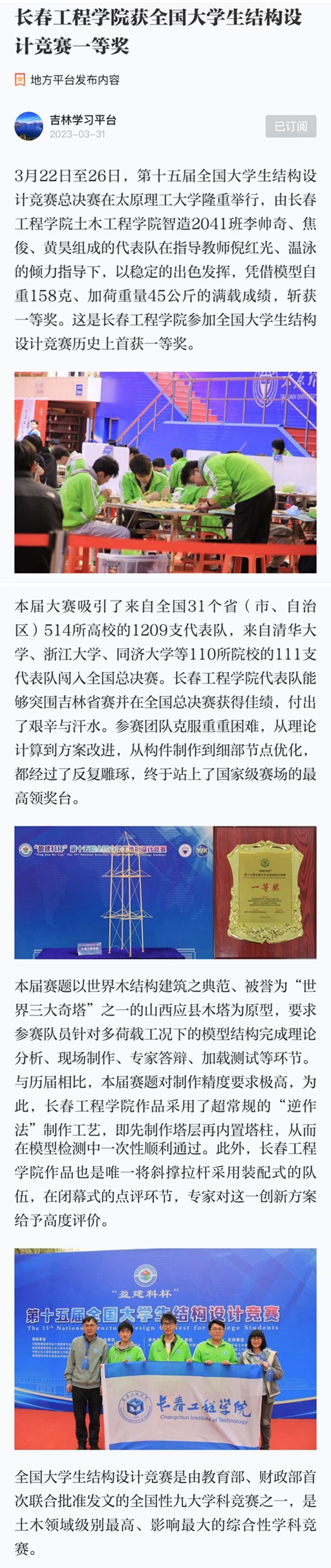 【学习强国】心博在线平台(中国)官网获全国大学生结构设计竞赛一等奖